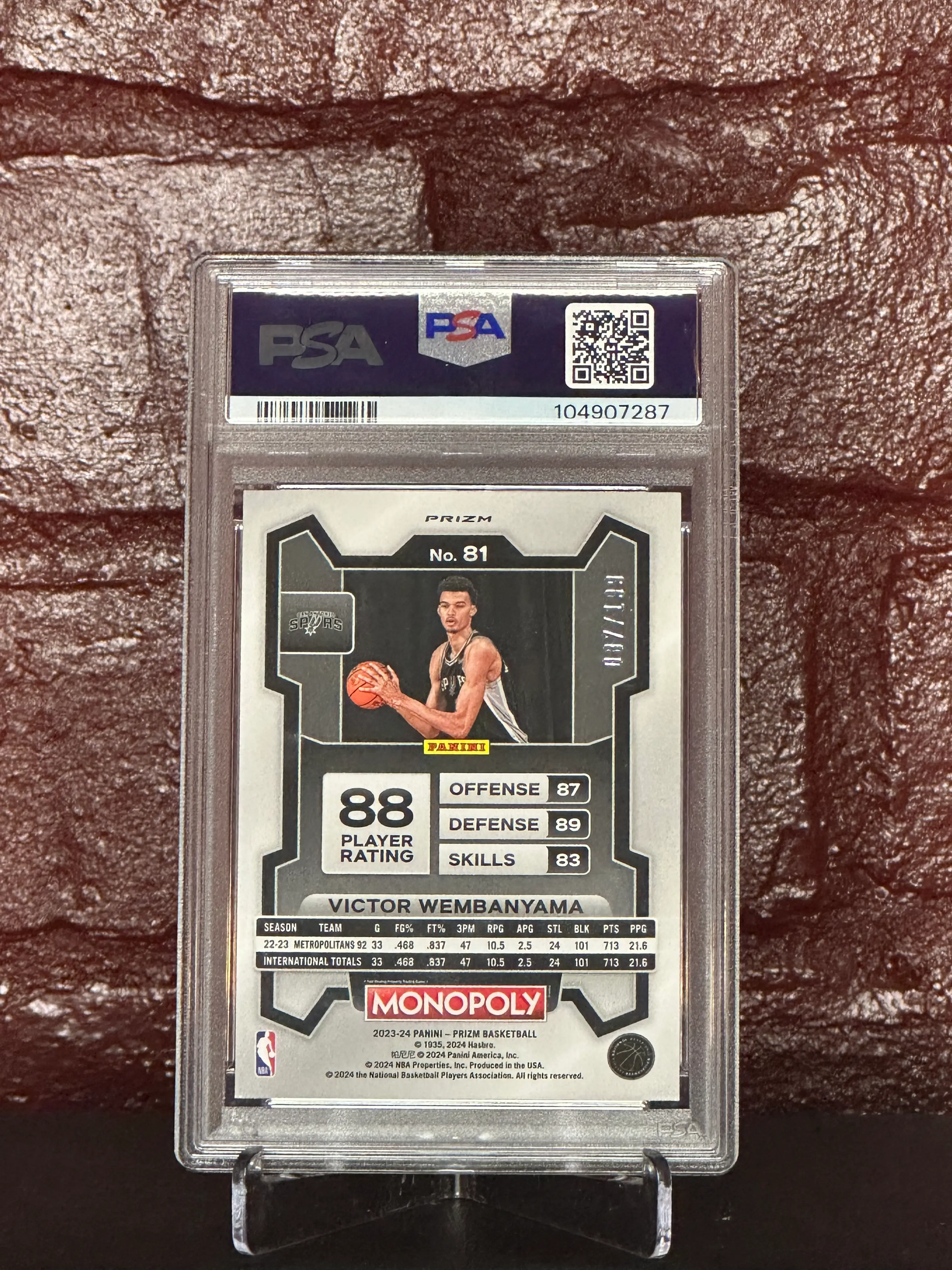 2023 PRIZM MONOPOLY, VICTOR WEMBAMY AMA, LIGHT BLUE, #81, PSA 9 MINT